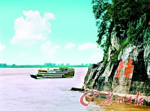 在赤壁縣城西邊的赤壁古戰(zhàn)場,如今依然江水滔滔。當(dāng)年“赤壁之戰(zhàn)”,經(jīng)此一役,定下三分天下格局。李白詩曰:“二龍爭戰(zhàn)決雌雄,赤壁樓船掃地空。烈火張?zhí)煺赵坪,周瑜于此破曹公!毕﹃栁飨,紅色的陽光灑在江面上,怎不讓人想起那烽火連天的三國?