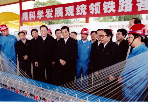 胡錦濤考察武漢天興洲公鐵兩用長江大橋工程并作重要指示