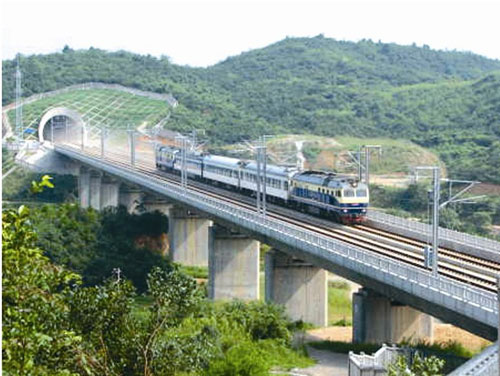 大瑤山位于湘粵交界之處,素有“南嶺險關”之稱。上世紀80年代,修建衡陽到廣州復線,建設者用7年時間在這里修建隧道,全長14公里,是當時國內最長的雙線電氣化隧道。這次,武廣客專的方案是修建隧道群,由1號、2號、3號隧道組成,橋隧相連。3條隧道全長25公里,用了3年半全部竣工。
