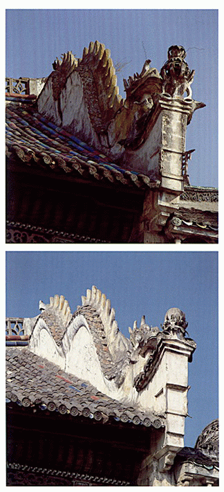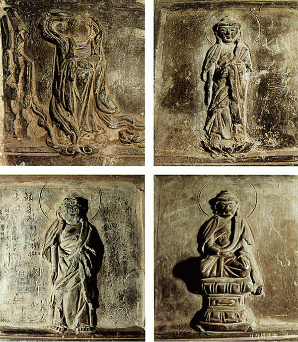 磚 雕 萬(wàn)壽塔座落在荊州市荊江大堤內(nèi)側(cè)古觀音磯上,是16世紀(jì)中葉,明藩第七代遼王朱憲節(jié)遵嫡母毛太妃之命為嘉靖帝祈壽而建。塔身內(nèi)外除玉雕佛龕坐佛外,還有兩千多塊磚雕。藝人以浮雕和線刻手法塑造了神態(tài)各異的佛像、動(dòng)物、花鳥(niǎo)圖案。磚雕兩側(cè),還以漢、滿、蒙、藏、回五種文字刻有捐資者姓名、捐資數(shù)目。