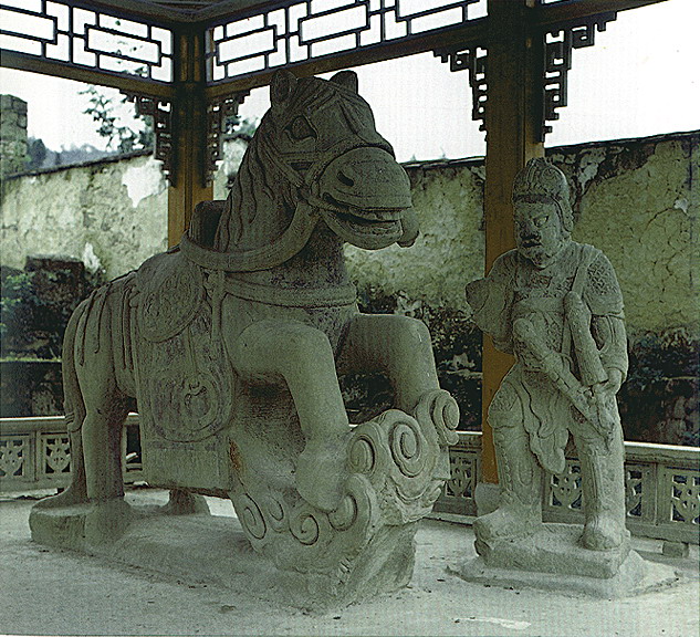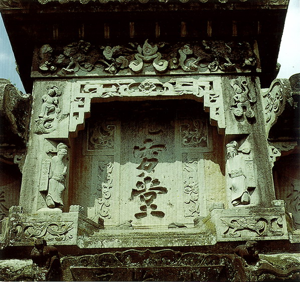 石雕 湖北省北有秦嶺東沿的武當(dāng)山、大別山、桐柏山,西接云貴高原,東南為幕阜山脈環(huán)繞,中部是寬闊的江漢平原。山區(qū)產(chǎn)石料,為石雕提供了豐富的用材;平原燒泥土制磚瓦,鐫以圖案美化建筑。民間石雕、磚雕分布,與地形大體一致。?凳耦}材廣泛,大致分為日常生活、倫理教化、神話傳說(shuō)、戲文故事、花鳥(niǎo)蟲魚、書文楹聯(lián)六類。